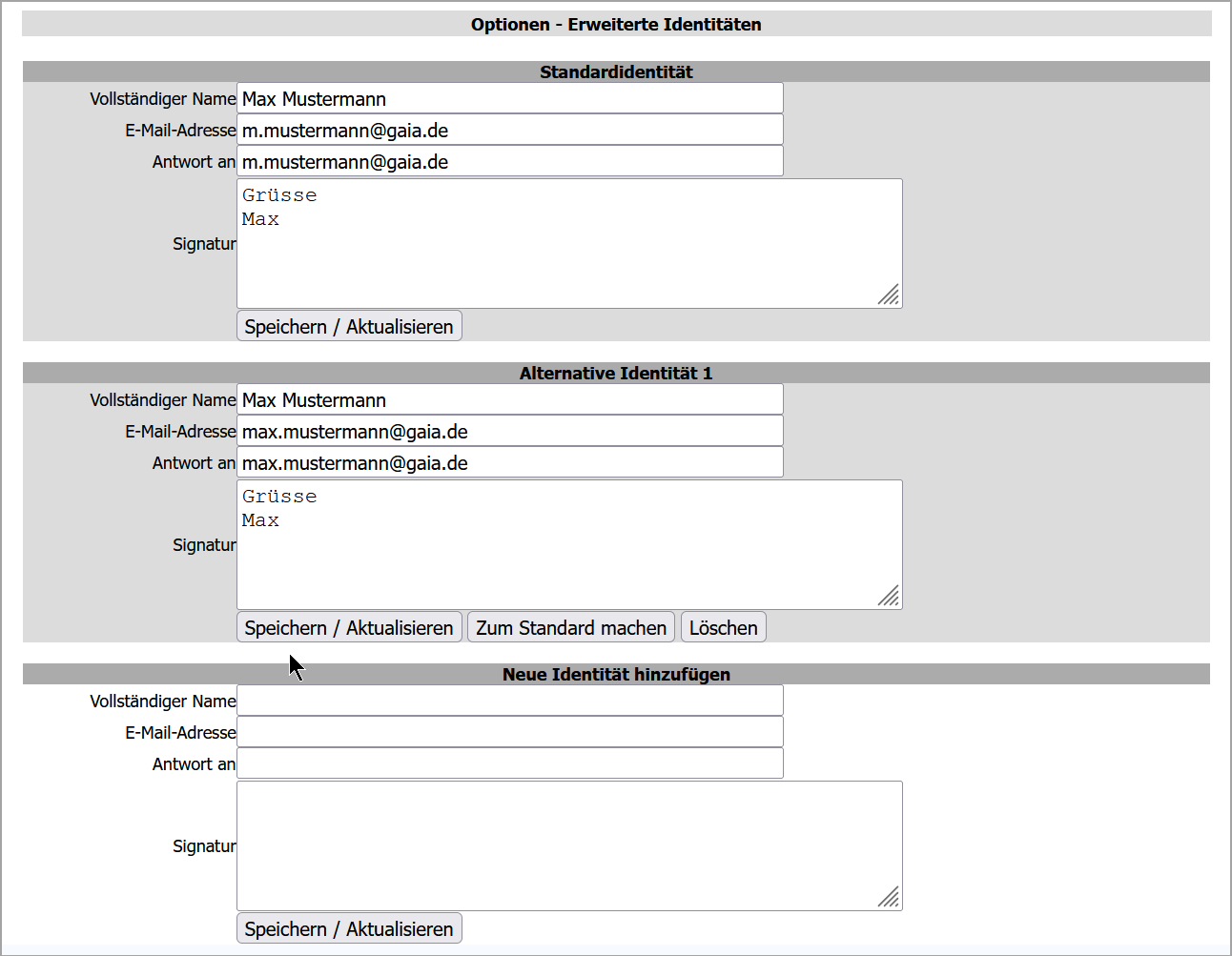 Neue Identität hinzufügen können Sie den Alias ergänzen.
