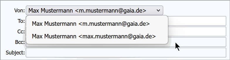 Sie haben beim Verfassen einer Mail nun die Wahl, unter welcher Absender-Adresse Sie die Mail versenden wollen.